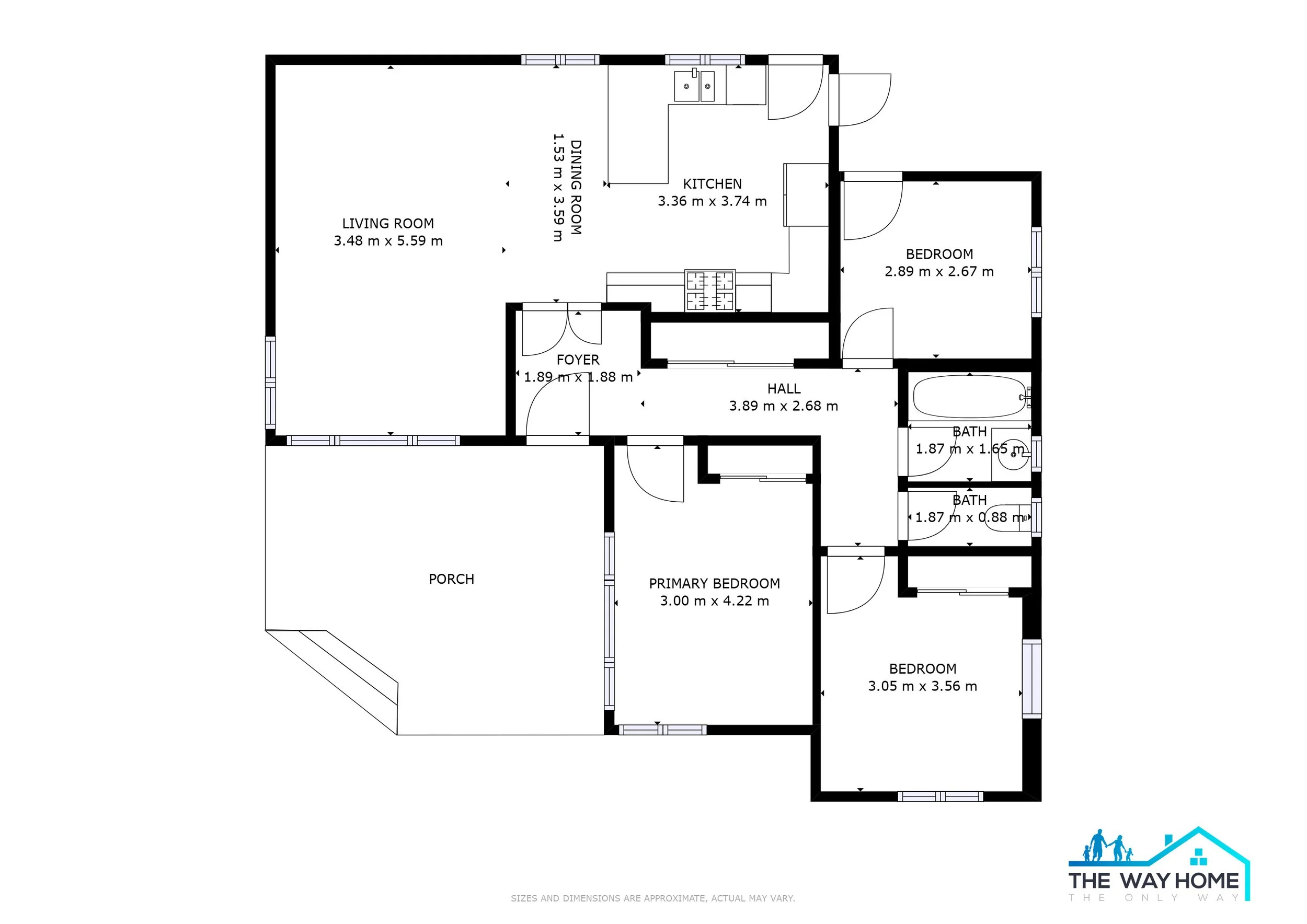 This home spreads out over 104 sqm more or less and comes complete with three generous bedrooms, each with built-in storage. The bathroom is tiled with a shower over the bath and a separate toilet.